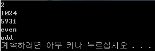 N개의 정수가 주어지면 홀수인지 짝수인지를 출력하는 프로그램을 만들어 경재의 능력을 검증할 수 있게 도와주자.