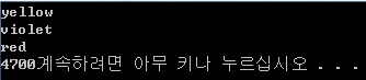첫째 줄에 첫 번째 색, 둘째 줄에 두 번째 색, 셋째 줄에 세 번째 색이 주어진다. 위의 표에 있는 색만 입력으로 주어진다.