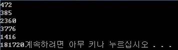 첫째 줄부터 넷째 줄까지 차례대로 (3), (4), (5), (6)에 들어갈 값을 출력한다.