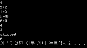P=NP가 문제인 경우에는 skipped를, 덧셈 문제인 경우에는 덧셈한 결과를 출력한다.
