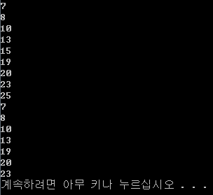 일곱 난쟁이가 쓴 모자에 쓰여 있는 수를 한 줄에 하나씩 출력한다.