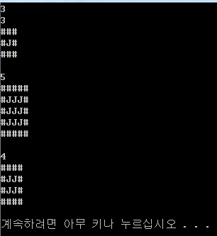 각 테스트 케이스에 대해서, 입력으로 주어지는 크기의 J박스를 출력한다. 박스와 박스 사이에는 빈 줄을 하나 출력한다.