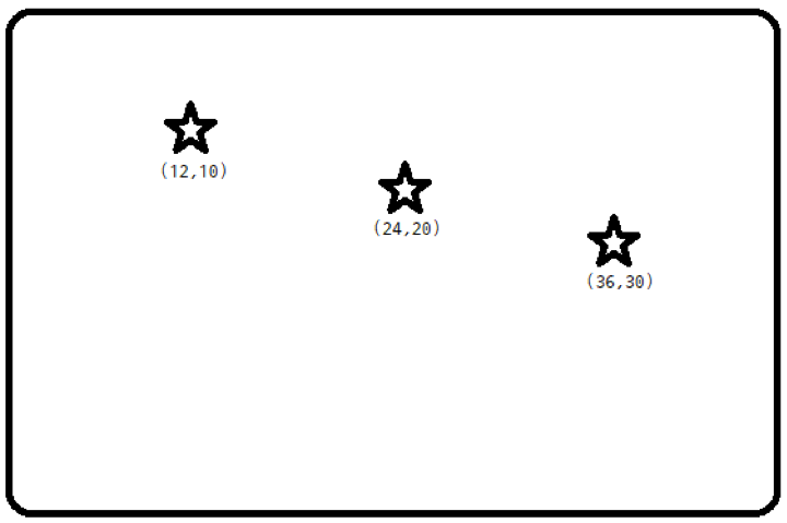 프로그램의 입력은 표준 입력으로 받는다. 스쿼드는 총 4명으로 구성되며 준서는 멀리서 저격을 하기 때문에 좌표가 주어지지 않는다. 따라서 첫 번째 줄부터 세 번째 줄까지 x, y (1 ≤ x, y ≤ 1000) 두 개의 자연수가 각각 주어진다. 각 줄의 x, y는 한 명의 팀원이 상대방 화면에서 어떤 위치인지 나타낸다. 그리고 팀원들은 항상 서로 다른 위치에 있다.