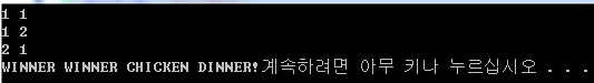 cout << "WINNER WINNER CHICKEN DINNER!";