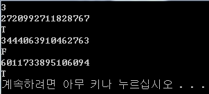 신용카드의 번호가 유효하면 “T”, 유효하지 않으면 “F”를 한 줄 씩 출력한다.