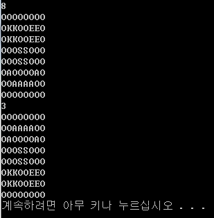 첫 번째 줄에 정사각형 모양의 마법거울의 크기를 나타내는 자연수 N(2 ≤ N ≤ 100)이 입력된다. 그 다음 N개의 줄에 걸쳐 거울에 비친 지영 공주님의 원래 모습이 각 줄에 N개의 문자로 표현된다. 마법거울은 알파벳 대소문자로만 거울에 비친 상을 표현할 수 있다. 마지막 줄에 마법거울의 심리상태를 나타내는 정수 K(1 ≤ K ≤ 3)가 주어진다.