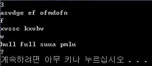 입력의 T(1 ≤ T ≤ 20)는 테스트 케이스로, 입력 제일 상단에 주어진다. 각각의 테스트 케이스는 한 줄마다 소문자와 공백으로 이루어진 영어 문장이 주어진다. 이 문장의 길이는 적어도 1이상이며 255이하다.