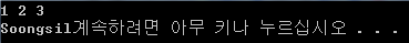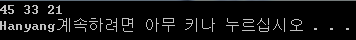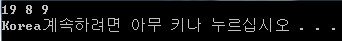 첫 번째 줄에 숭실대학교의 참여도, 고려대학교의 참여도, 한양대학교의 참여도를 의미하는 세 자연수 S, K, H가 공백으로 구분되어 주어진다. (0 ≤ S, K, H ≤ 100)