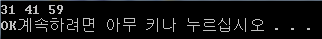 첫 번째 줄에 일처리가 잘 되고 있어 무언의 압박이 필요가 없으면 (따옴표를 제외하고) “OK”를 출력한다.