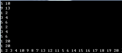 1부터 20까지 오름차순으로 놓인 카드들에 대해, 입력으로 주어진 10개의 구간 순서대로 뒤집는 작업을 했을 때 마지막 카드들의 배치를 한 줄에 출력한다.