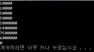 There are multiple lines in the input. Each line contains an employee’s income before the tax, which is a positive integer, a multiple of 1000, and not greater than 10,000,000. The input terminates with a line containing 0 which should not be processed.