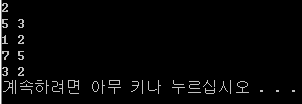 테스트 케이스마다 한줄에 다리가 잘린 닭의 수 U와 멀쩡한 닭의 수 T를 공백을 간격으로 출력한다.