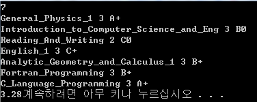 평균 평점은 각 과목의 학점*성적을 모두 더한 뒤에, 총 학점으로 나누면 된다.