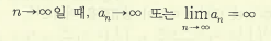 - an이 양수로서 한없이 커지는 경우, 수열 {an}은 "양의 무한대로 발산한다"