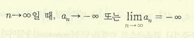 - an이 음수로서 그 절댓값이 무한히 커지는 경우, 수열 {an}은 "음의 무한대로 발산한다"