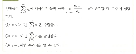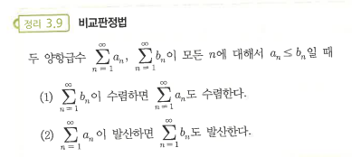 - 수열 {an}이 0으로 수렴하지 않는다면, 수열 {an}은 발산 → 급수의 발산 판정 가능