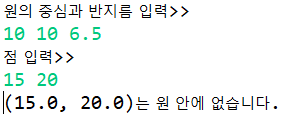 System.out.println("원의 중심과 반지름 입력>>");//원의 중심과 반지름 입력 받기