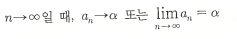 - 일반적으로 수열 {an}에서 n이 계속 커짐에 따라 an이 일정한 값 α에 한없이 가까워지는 경우
